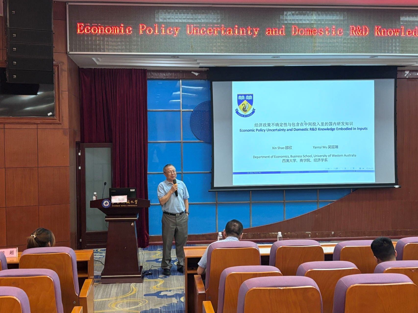 2024年6月20日下午,美狮贵宾会开展了主题为《Economic PolicyUncertainty and Domestic R&D Knowledge Embodied in Inputs》的专题讲座。本次讲座由西澳大学商公司吴延瑞教授主讲,美狮贵宾会胡超经理主持,2023级部分研究生参加。