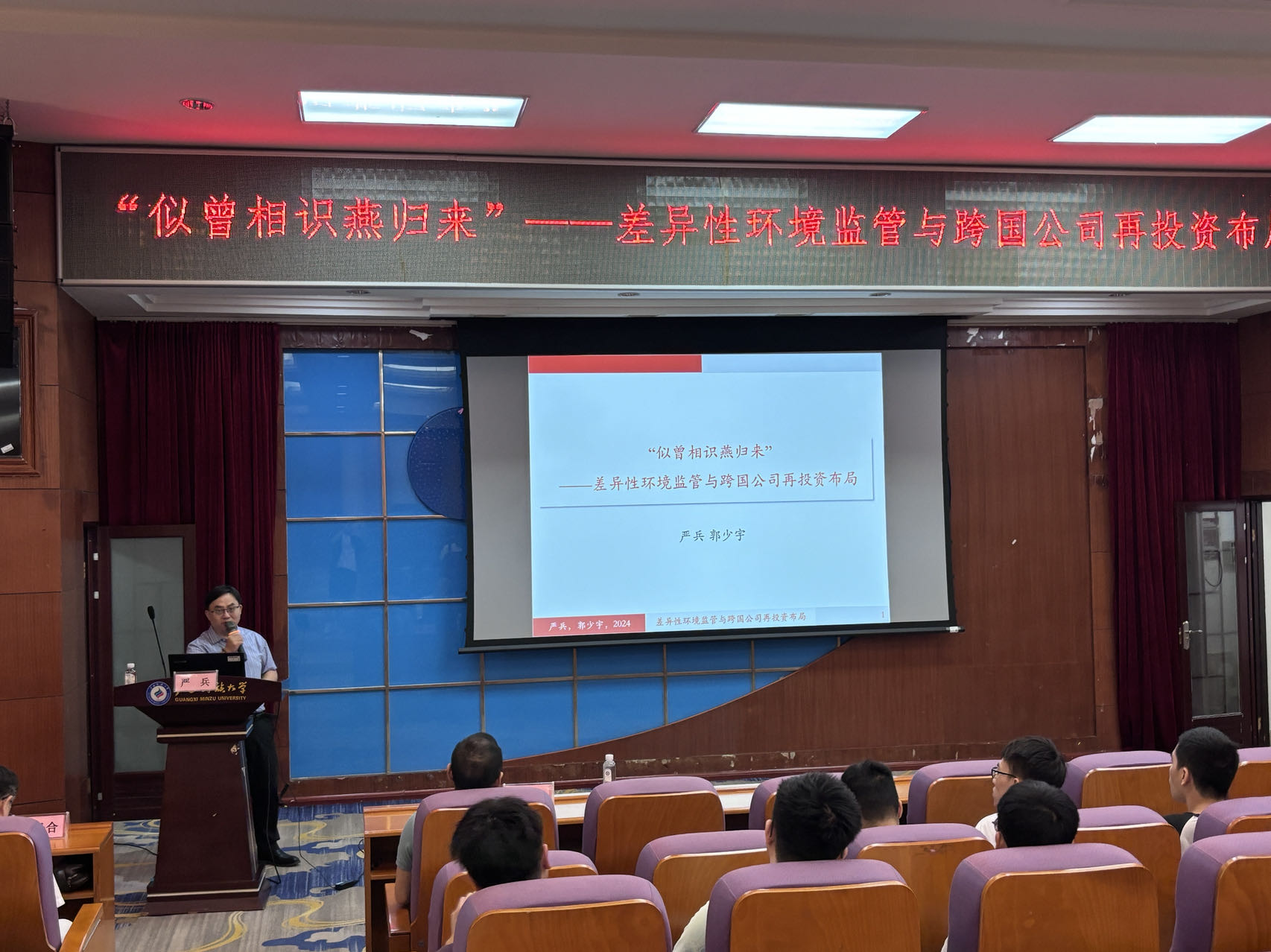 2024年6月27日上午,美狮贵宾会开展了主题为《“似曾相识燕归来”——差异性环境监管与跨国公司再投资布局》的专题讲座。本次讲座由南开大学美狮贵宾会副经理、国际经济研究所所长、博士生导师严兵教授主讲,美狮贵宾会胡超经理主持,2023级部分研究生参加。