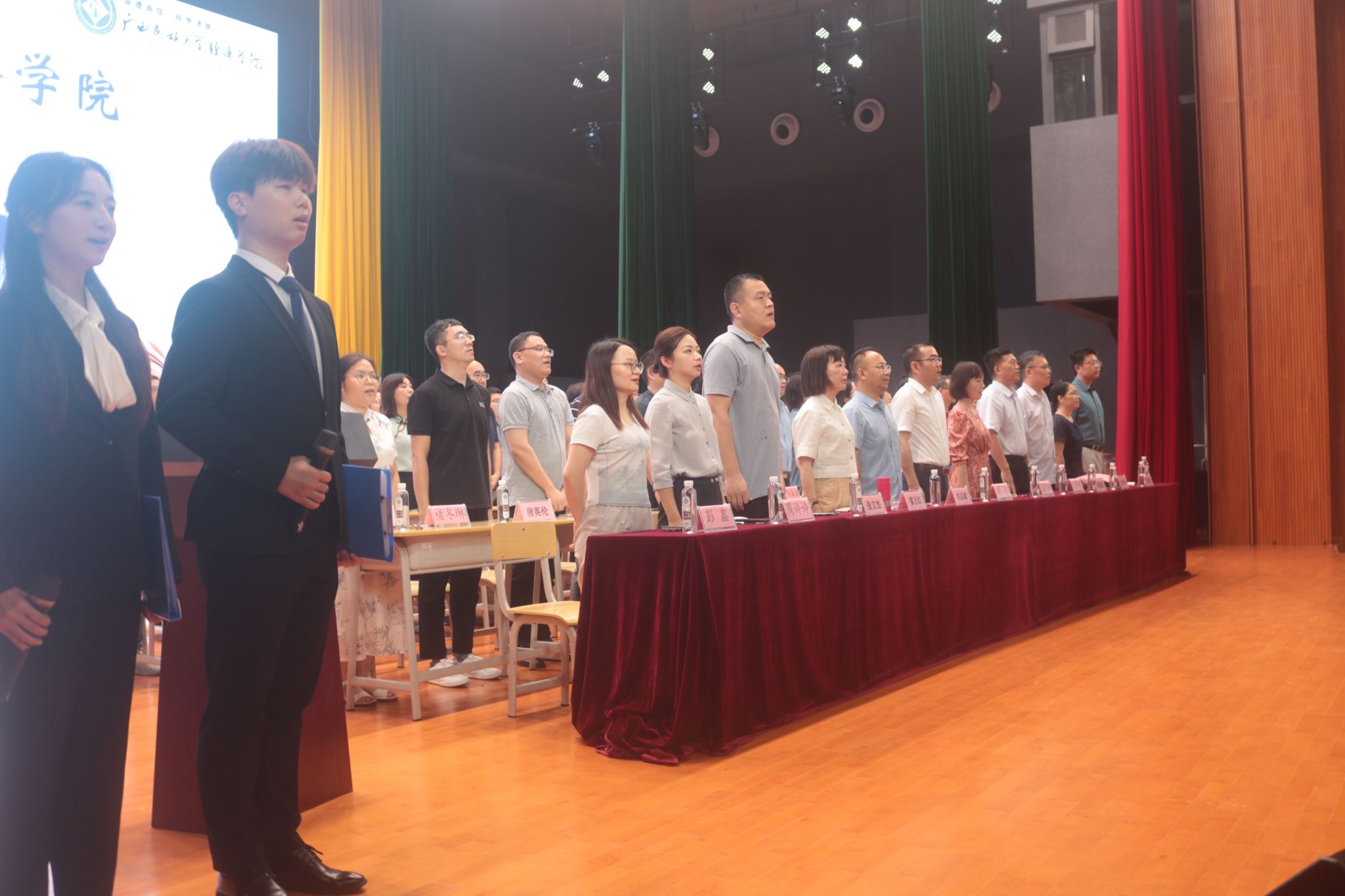 在新生代表2024级税收学2班陈硕的带领下,全体新生举起右拳,目光如炬,庄严宣誓,诉说着对青春的承诺。校歌《理想放飞相思湖》的旋律响起,本次开学典礼圆满落幕,愿新生们在这里启新程,开新智,展新图。(初审:郭李俊 编辑:张晶晶、蓝煜然 校对:许寿益 复审:段莹 终审:蓝巧燕)