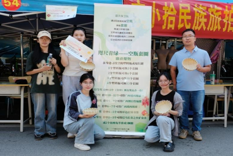 用思维构筑梦想,用行动点亮希望。在本次“咫尺青绿—空瓶套圈”创新创业项目实践活动中,“蓝天保卫队”成功回收了校园内众多的废弃瓶子,不仅促进了环保意识的提升,还促进了民族文化的传播。“蓝天保卫队”以切实的行动,为构建绿色社会、传播壮族文化、保护蓝天,贡献了青春力量。(初审:樊光义 编辑:张晶晶、邓畅怡 校对:许寿益 复审:郭李俊 终审:蓝巧燕)